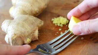 Tip: rasp gember & knoflook met een vork