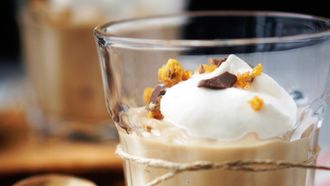 Butterscotch pudding met toffee crumble