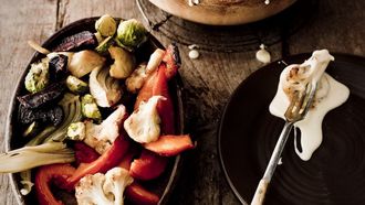 Heerlijke kaasfondue met seizoensgroenten