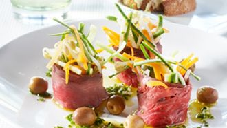 Knapperige groenten met rosbief en kruidendressing