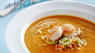 Paprikasoep met witte kool en coquille
