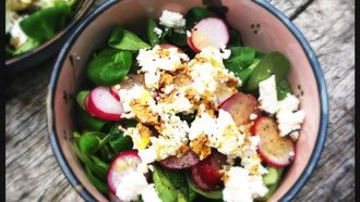 Veldsla met geitenkaas en radijs