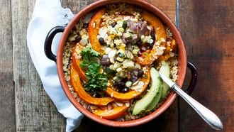 Gierstsalade met pompoen, zwarte bonen & rozemarijn