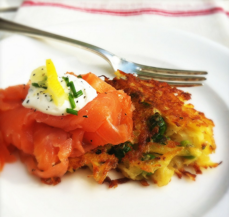Dit heerlijke recept voor aardappel-doperwten pannenkoekjes met gerookte zalm komt van de fijne blog MadeByEllen.com. Een echte aanrader; want deze dame maakt verukkelijke gerechten met verse ingrediënten en een flinke dot joie de vivre.