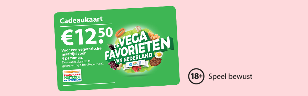 DOE MAAR LEKKER VEGETARISCH is een initiatief van de Nationale Postcode Loterij met Albert Heijn en Unilever als partners om mensen te inspireren eens vaker te kiezen voor een vegetarisch alternatief. Alle deelnemers van de Nationale Postcode Loterij ontvangen een cadeaukaart t.w.v. € 12,50 waarmee ze t/m 17 november een vegetarische maaltijd kunnen halen bij Albert Heijn. Meer info: www.doemaarlekkervegetarisch.nl.