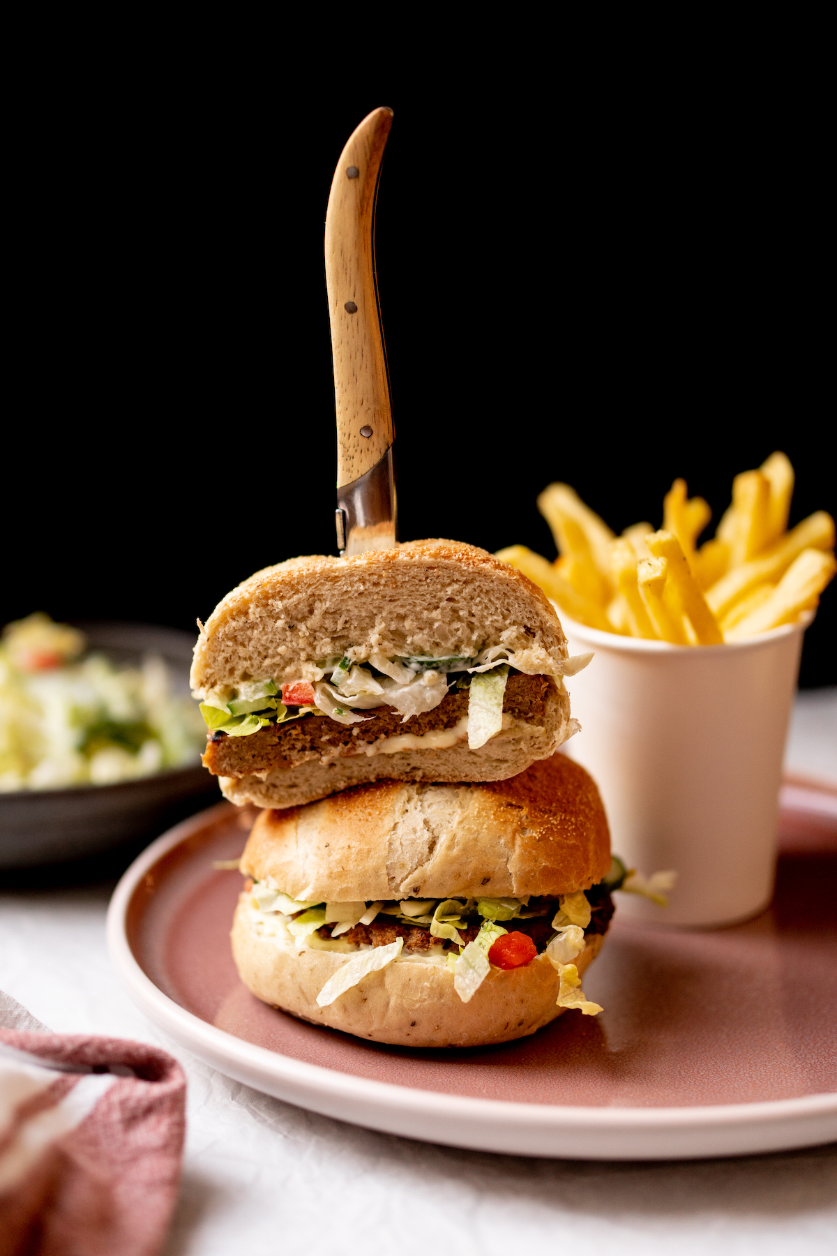Ben je gek op een burger met friet? Wij ook! En als je eens wat vaker vegetarisch wilt eten, hoef je je geliefde burger gelukkig niet te missen. Deze vega variant met friet en sla staat in een mum van tijd op tafel en voorziet in al je burger cravings.
