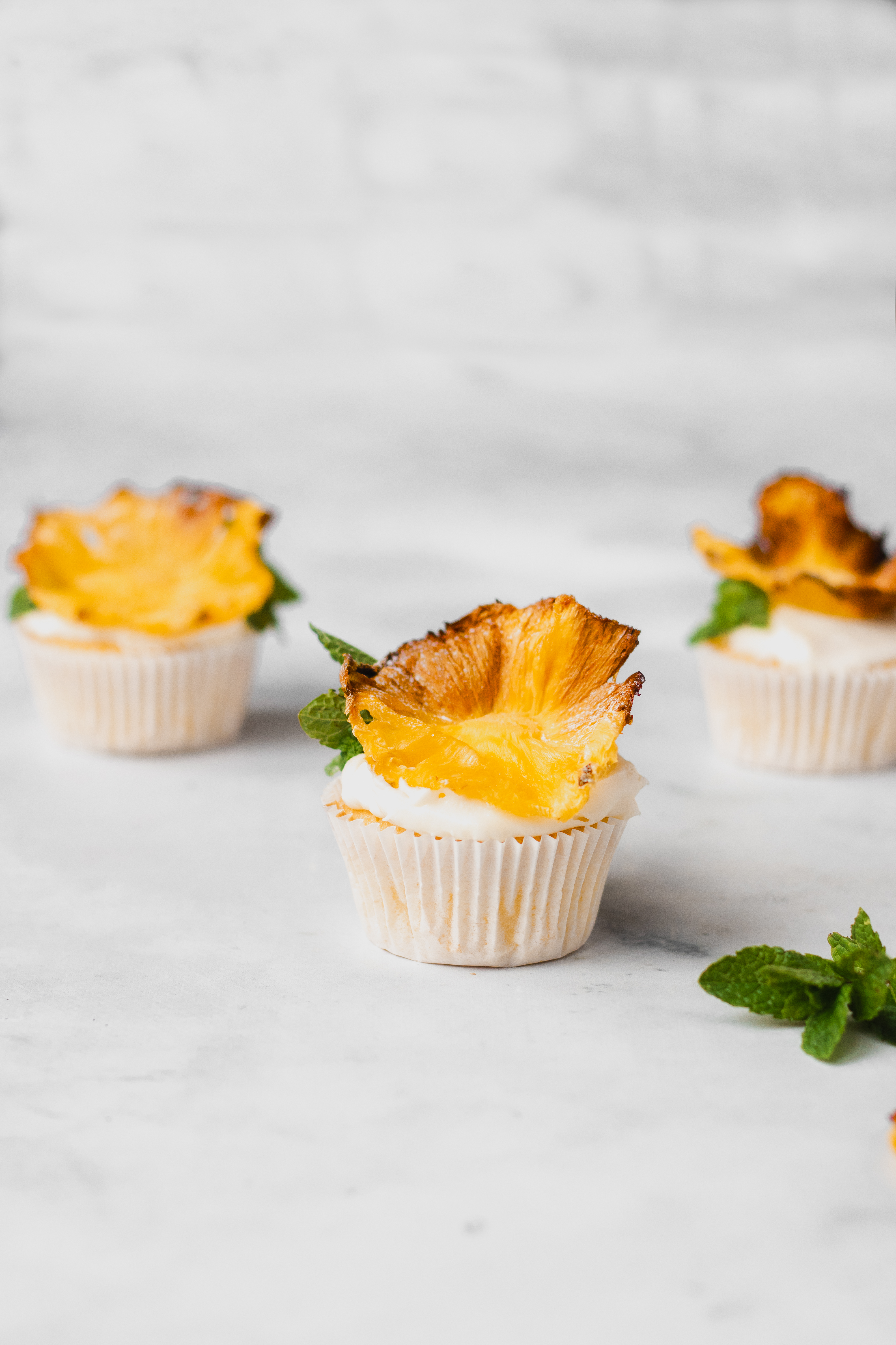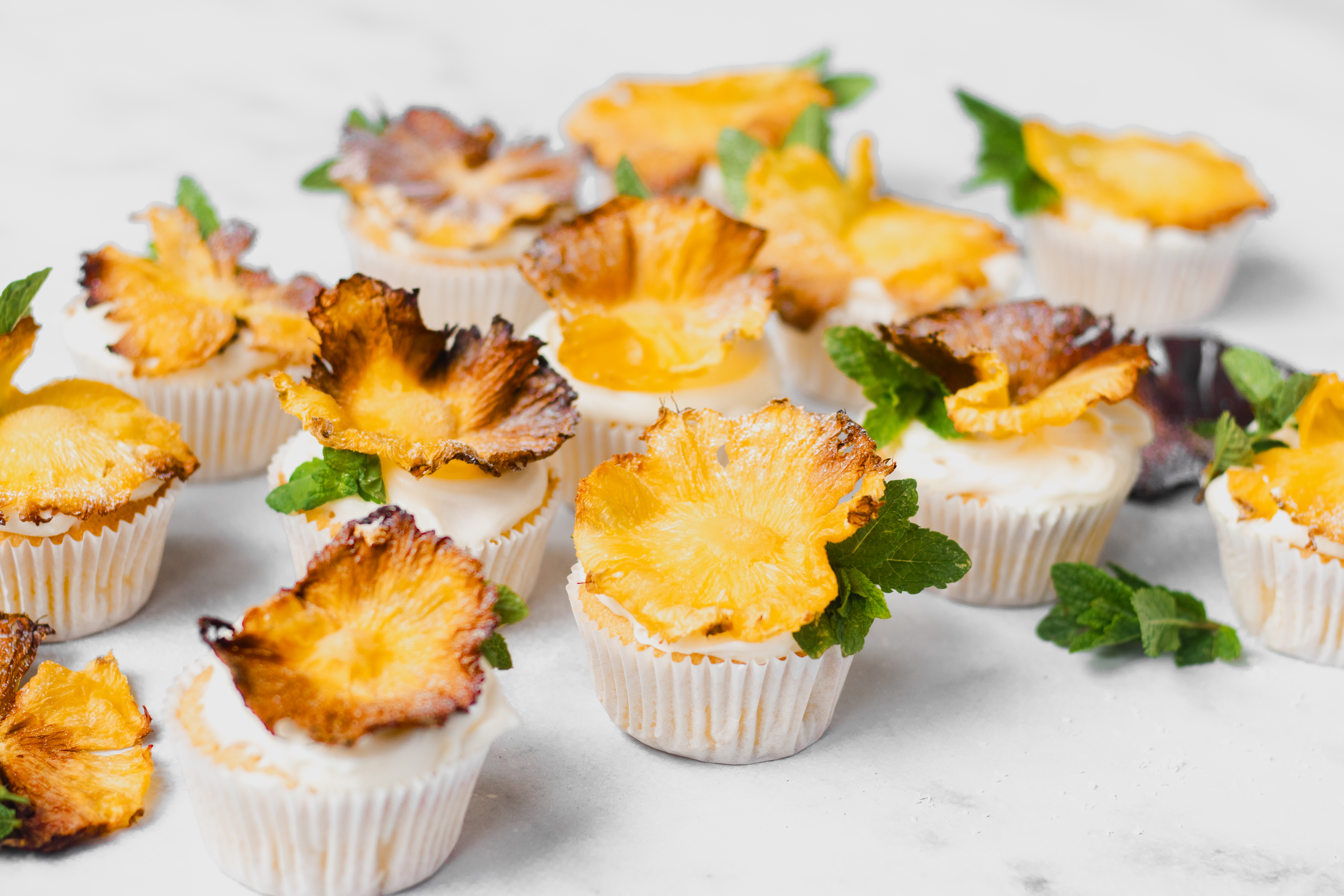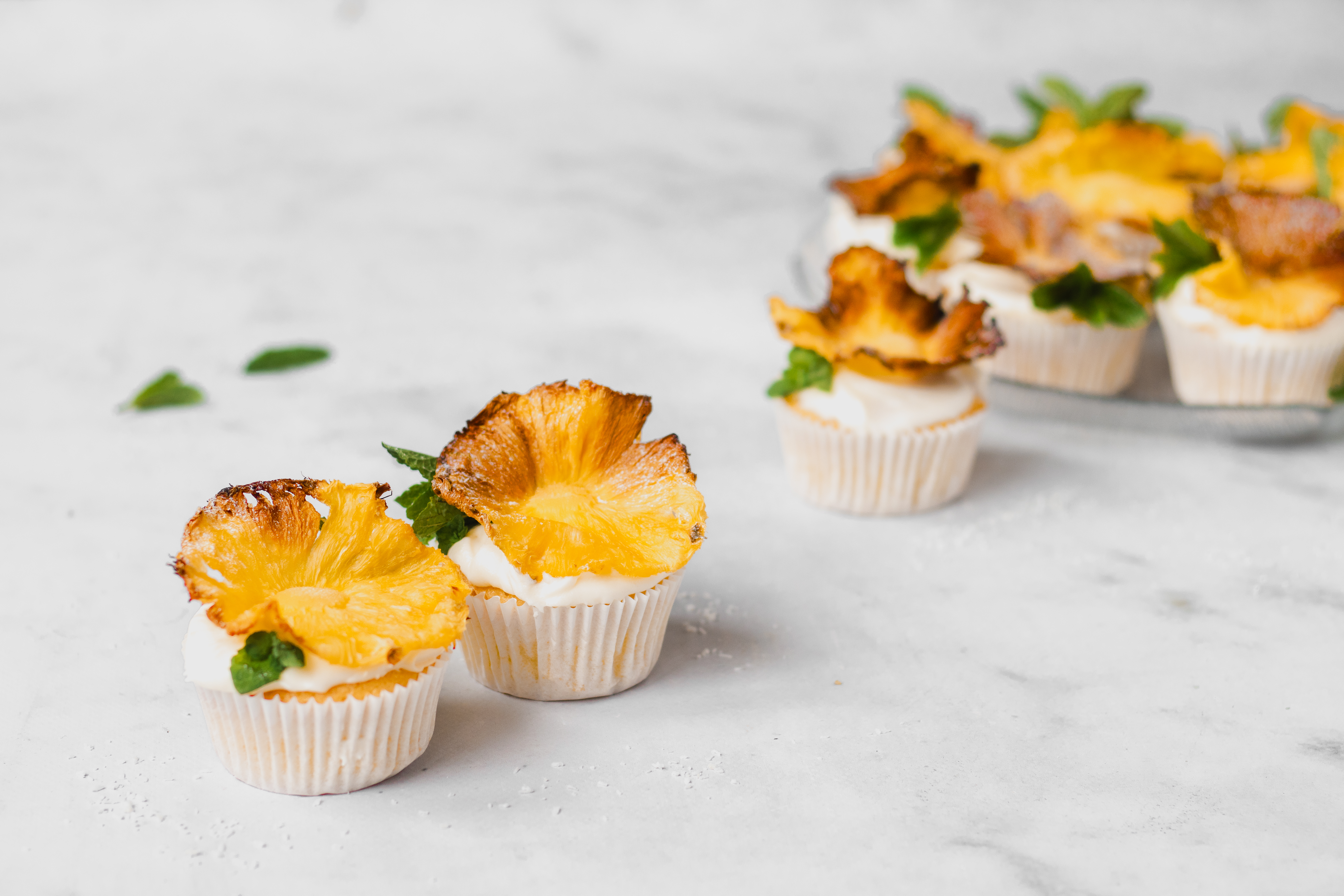 Kokoscupcakes met ananasbloemen (makkelijke decoratie-hack!)