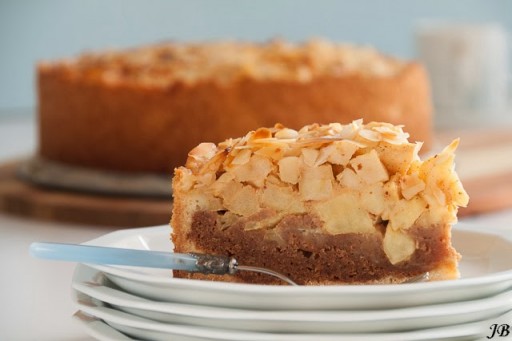 Bak de taart 60-70 minuten in de voorverwarmde oven. Leg goed op of het amandelschaafsel niet te bruin wordt. Dek in dat geval de taart af met aluminiumfolie en controleer na een uur of de taart al gaar is. Het beslag moet stevig aanvoelen.