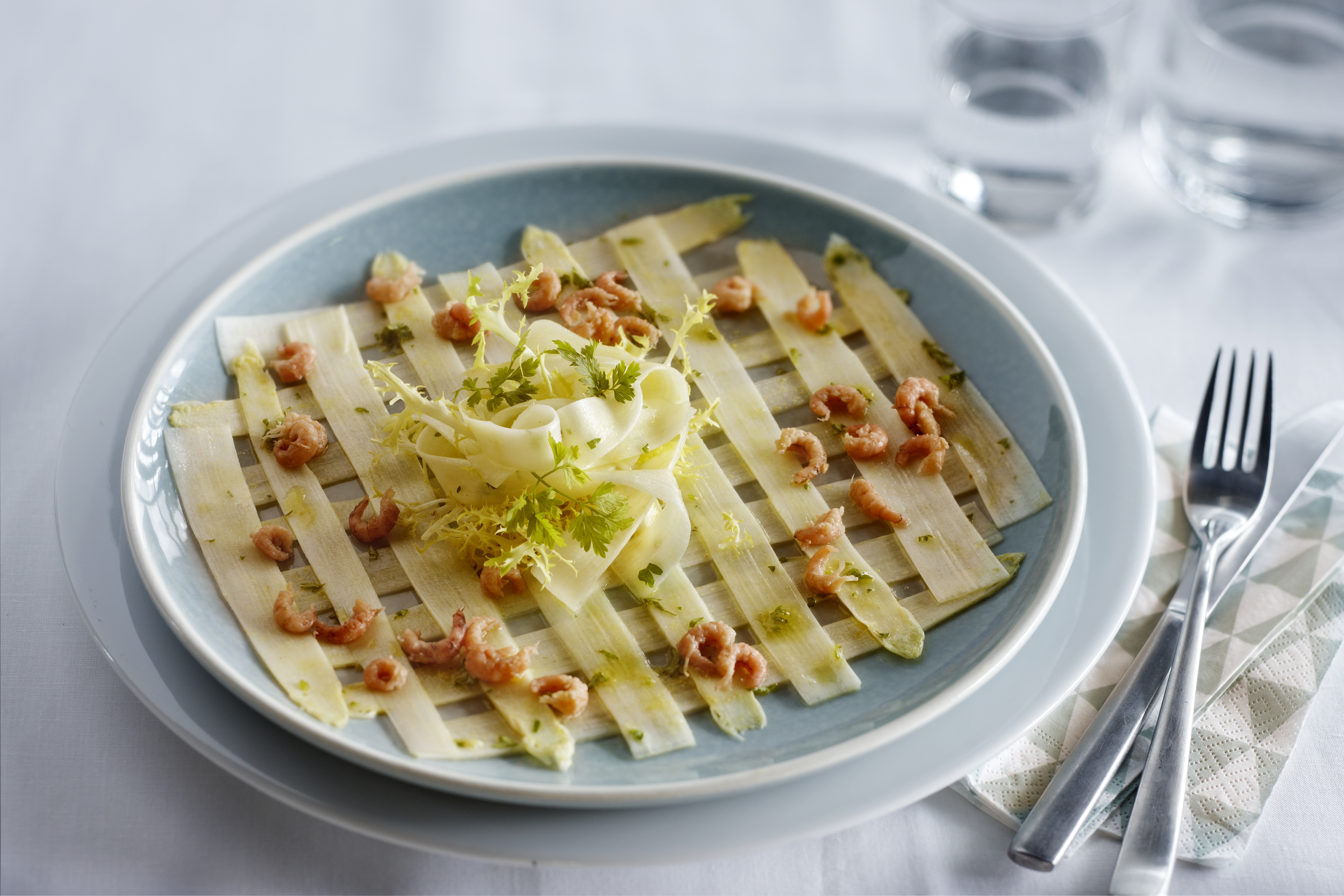 Eens ’n keer wat anders dan een rundercarpaccio: eentje van witte asperges! Een heerlijk fris voorgerecht voor vier personen.
