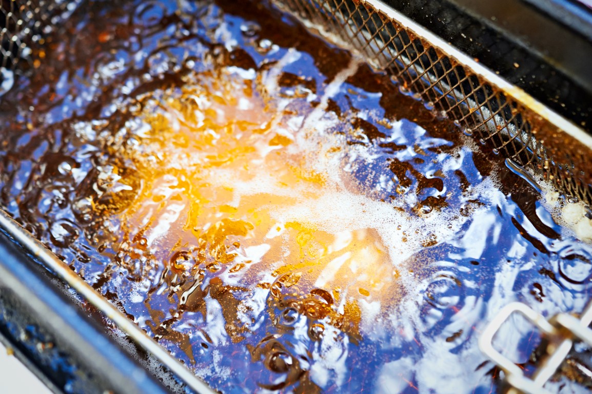 - Zet een (frituur)pan met zonnebloemolie op 180°C.