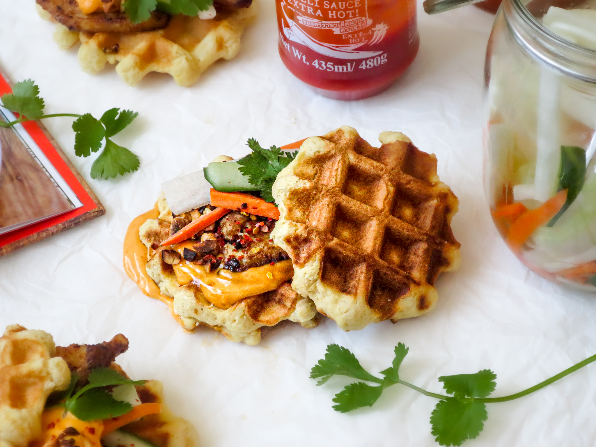 Bánh mì zijn Vietnamese broodjes met een Franse slag. Normaal gezien wordt een knapperige baguette belegd met zoete, zure en zoute ingrediënten, maar wij verruilen het broodje in dit recept voor een wafel. Waarom? Omdat het kan. En omdat dat verdraaid lekker is.