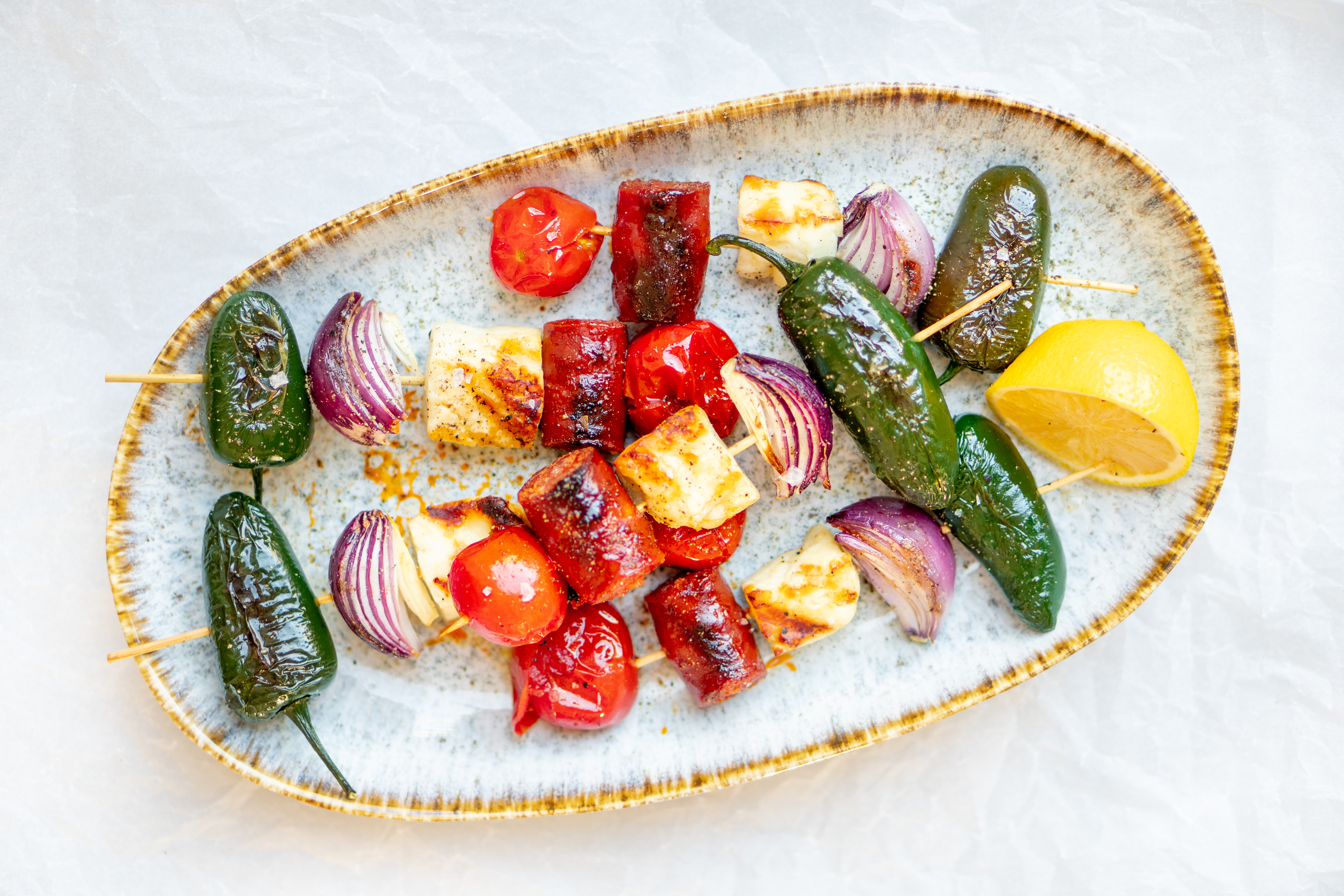 Mediterrane barbecuespiesjes met halloumi & chorizo