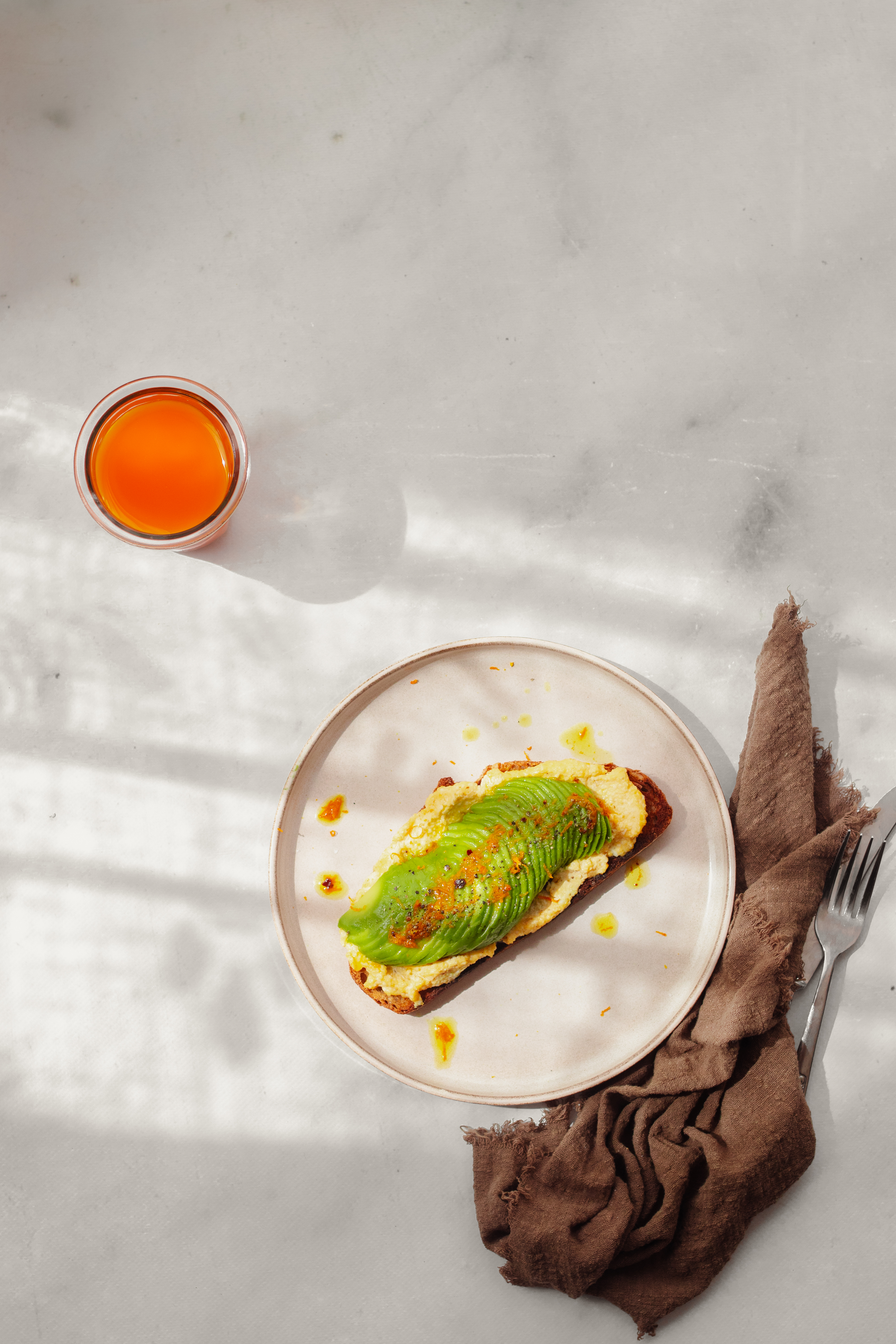 Ćcht lekkere avocado-toast bevat dunne plakjes knalgroene en rijpe avocado, geserveerd op geroosterd zuurdesembrood en dan hetgeen dat Ć©cht verschil maakt: een dressing uit onverwachte hoek met sinaasappel.