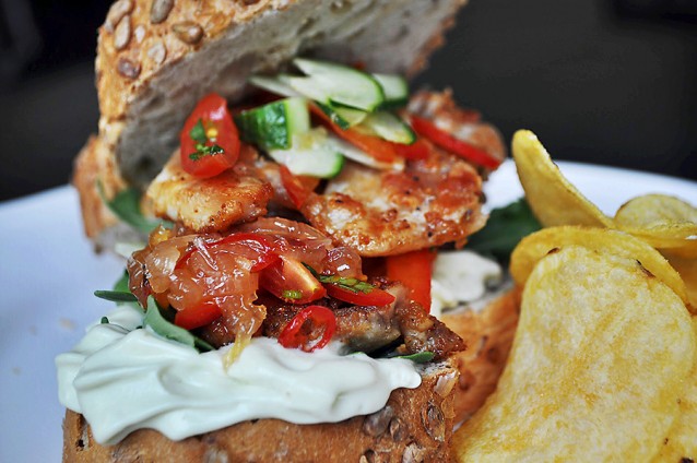 Dit broodje crunchy kip met avocadocrème en gekaramelliseerde sjalotjes is onweerstaanbaar. Een must-make!