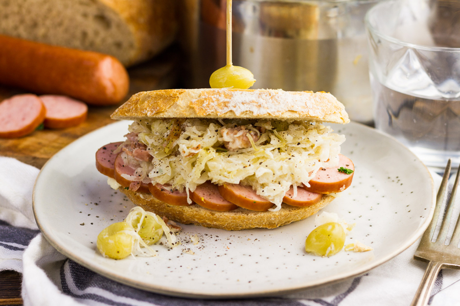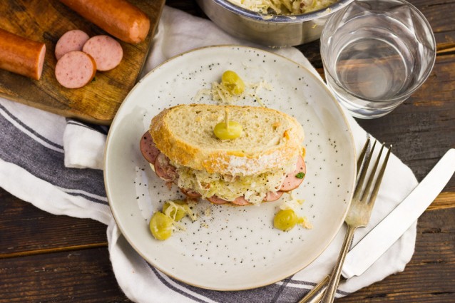 Een lekker makkelijk recept voor elke dag: broodje zuurkool met worst.
