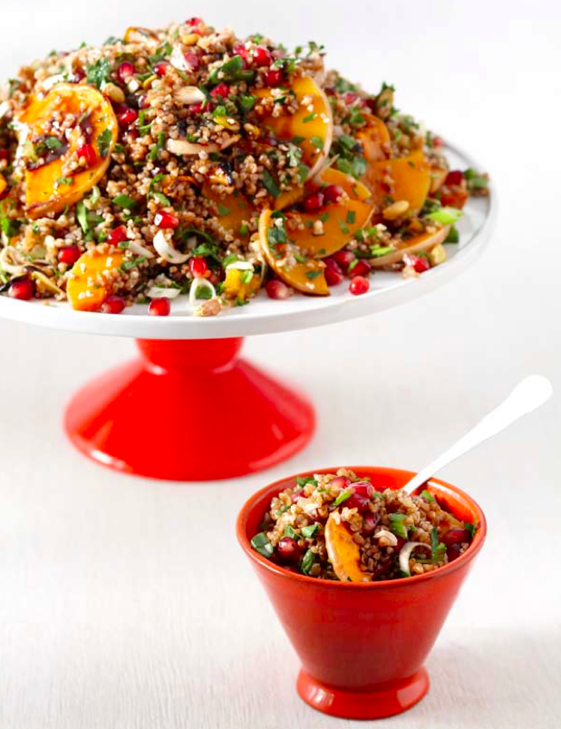 Bulghursalade met granaatappel & geroosterde pompoen