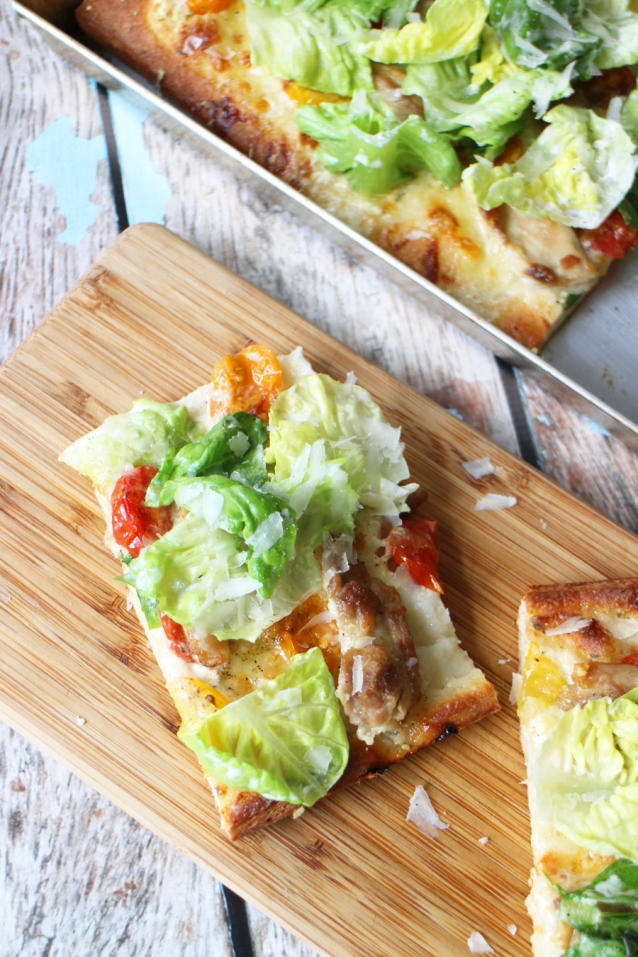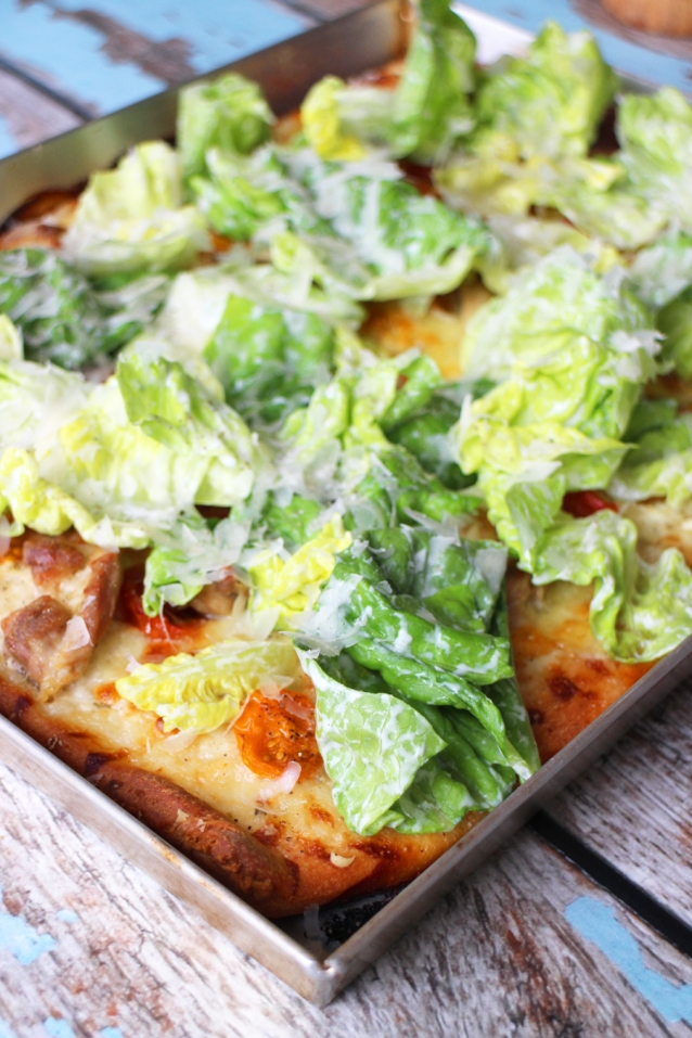 Een Caesar pizza? Juist, dit is een combinatie tussen een gewone pizza en de geliefde Caesarsalade. Italianen zullen ons voor gek verklaren, maar dat mag de pret niet drukken!