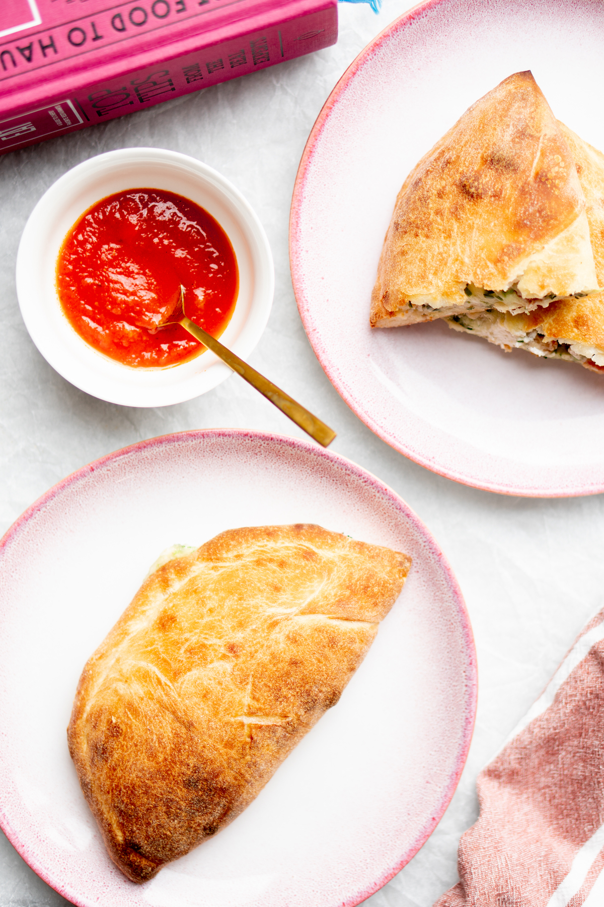 - Bak de calzones in 15 tot 20 minuten goudbruin in de voorverwarmde oven. Serveer je pizza calzone met tomatensaus (marinara) of eet ze zo op.