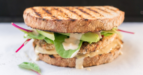 Deze chicken Caesar sandwich is nog lekkerder dan ‘ie eruitziet! Alsof je je tanden in een burger vol umami zet… maar dan een stuk gezonder.