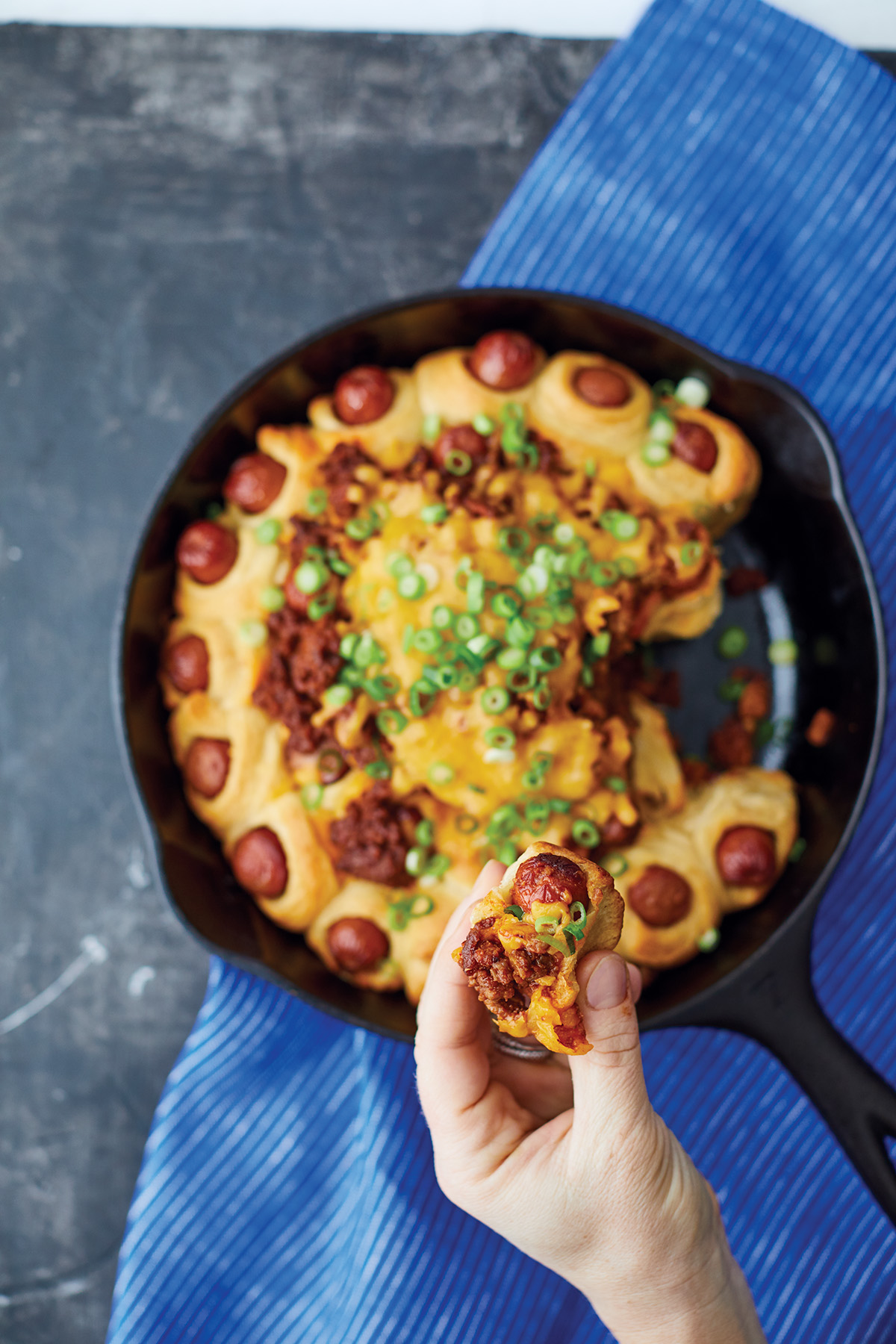 Dit recept voor chili-hotdogs uit de pan wordt jouw nieuwe favoriete borrelhapje. Je maakt ze supermakkelijk en snel, met kant-en-klaar croissantdeeg. Lekker voor de kinderen, maar iederéén smult van deze snelle chili-dogs. Het recept komt uit het nieuwe Tasty Kookboek – je weet wel, van die razend populaire kookvideo’s online.