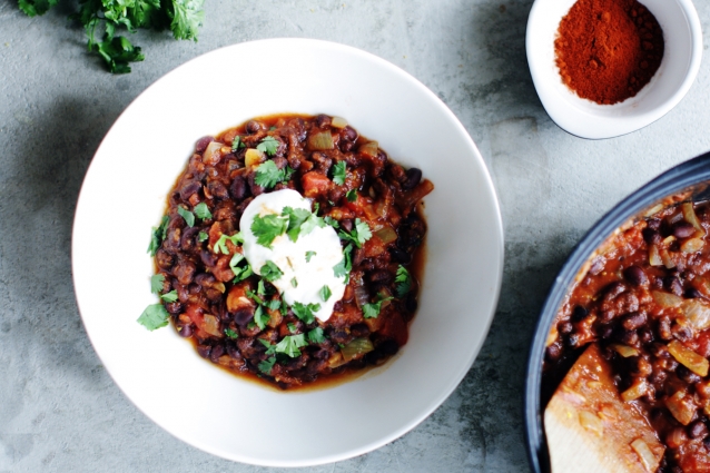 “Chili is een typisch wintergerecht, maar eerlijk is eerlijk: in de zomer maak ik deze bonenschotel ook graag. Bonen staan sowieso hoog op mijn lievelingsladder. Ik vind ze zalig, ze zijn ontzettend goed te combineren en ook nog eens enorm voedzaam.