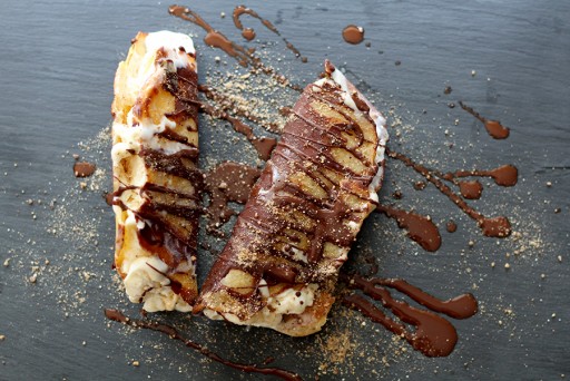 Dip nu je taco’s in de chocolade en laat een paar minuutjes staan. Als het niet hard wordt, zet je ze nog even in de vriezer. Vul ze vervolgens met zacht geworden roomijs (wij gebruikten vanille-karamel roomijs) en top, als je wilt, met je favoriete nootjes of sprinkles. Wij gebruikten fijngemalen hazelnoten.