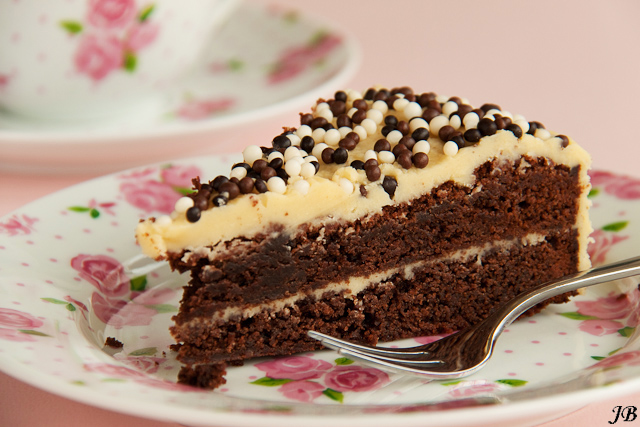 Een heerlijk indulging recept van Caroline: chocoladetaart met glazuur van Bailey’s en witte chocolade. Oompff…