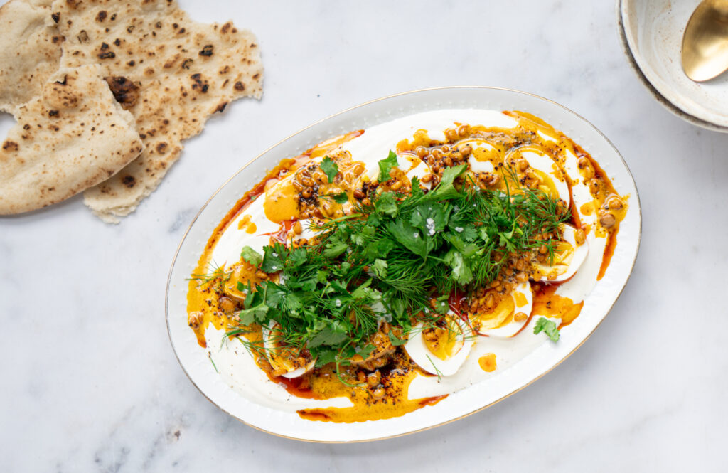 Makkelijk recept voor cilbir (Turkse eieren met boter en knoflookyoghurt voor de brunch)