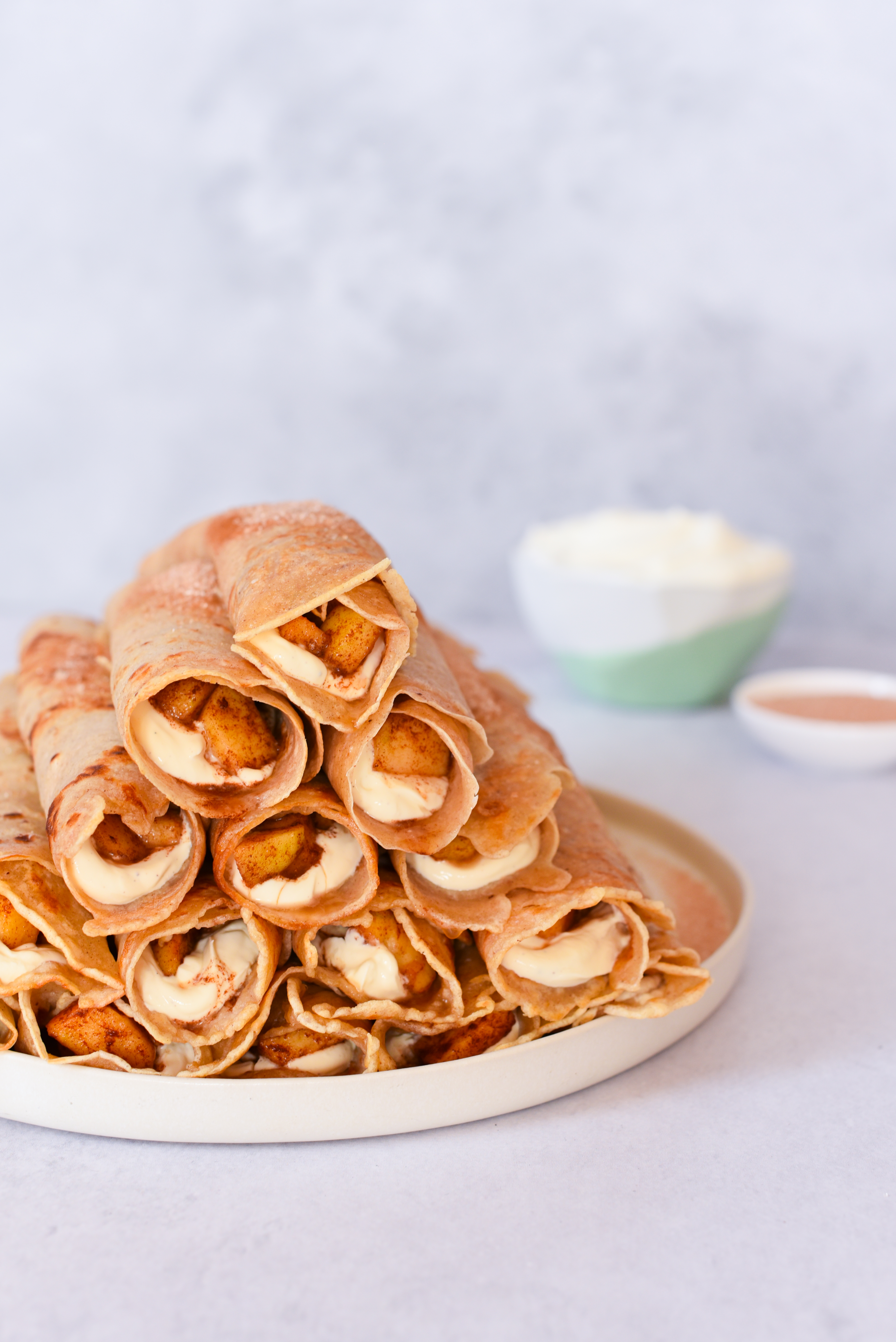 Werk jij thuis en kun je wel een opkikker gebruiken? Probeer deze overheerlijke appel-kaneel crêpes eens! De vulling van vanille-room, appel en kaneel zal bij jong en oud in de smaak vallen. En extra leuk: de kinderen vinden het vast en zeker leuk om een handje te helpen in de keuken. Dat zijn de kleine voordelen van zulke dagen. Bakken maarrr!