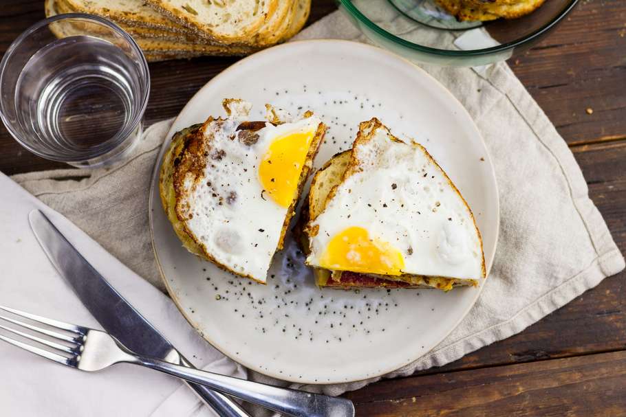 Croque madame met salami