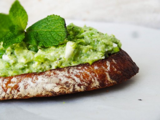 Dit recept voor een crostini met doperwten, feta & munt-hummus van Cuisine de Clementine is écht super makkelijk, en so damn good!