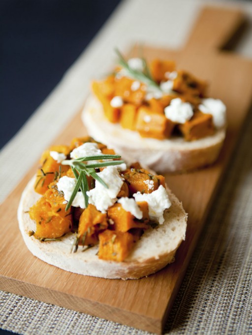 Crostini’s met geroosterde pompoen en geitenkaas