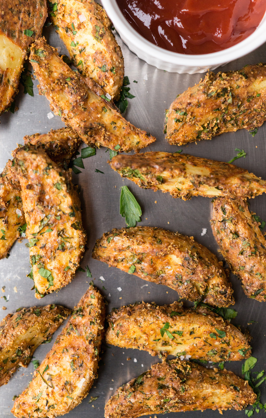 Deze gebakken aardappeltjes uit de oven van Tasty krijgen een korstje van Parmezaanse kaas, knoflook en kruiden. Ontzéttend lekker en supersnel klaar. Eet ze zo (lekker met ketchup!) of serveer ze als bijgerecht.