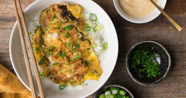 Katsudon (Aziatische rijstbowl met omelet en krokante kip)