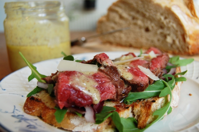 Broodje steak met dressing van Parmezaanse kaas