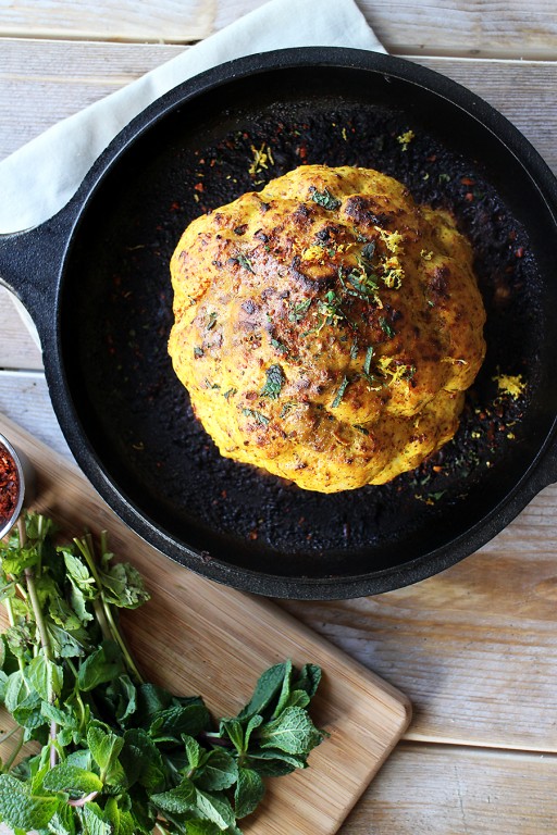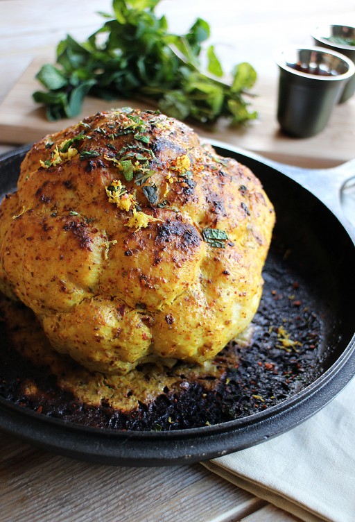 Hele (gekruide) bloemkool uit de oven met chili en citroen