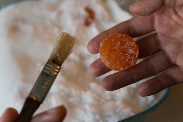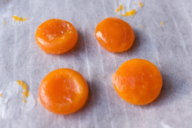 Héél bijzonder is de versie waarbij je de dooier lange tijd laat drogen. Het resultaat is een stevige dooier die je kunt raspen over je pasta of over asperges of vis. Klinkt misschien gek, maar je kunt het zien als de armeluisversie van bottarga: gedroogde viskuit van de harder, die ook wordt geraspt en veel in luxerestaurants wordt geserveerd. Net als bottarga staat gepekelde eidooier bol van de umami.