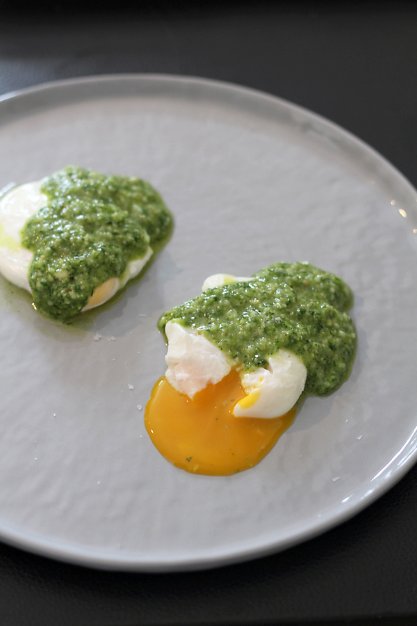 Gepocheerde eitjes met peterseliepesto