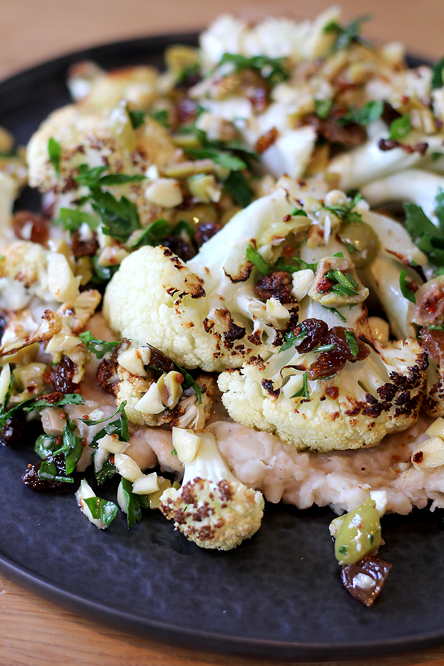 Zo maak je de geroosterde bloemkool met bonenpuree