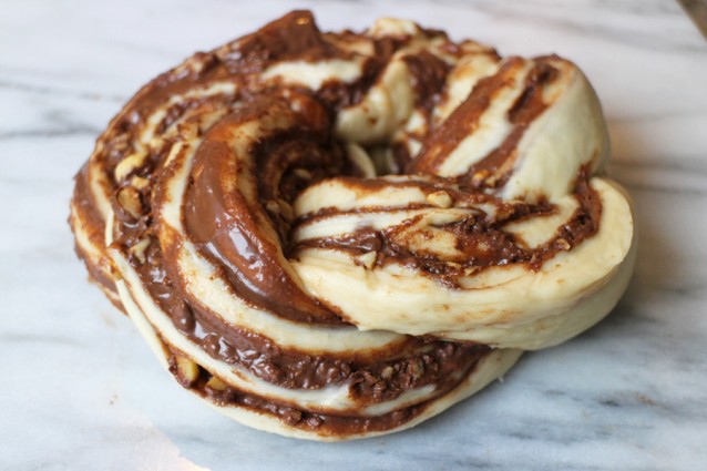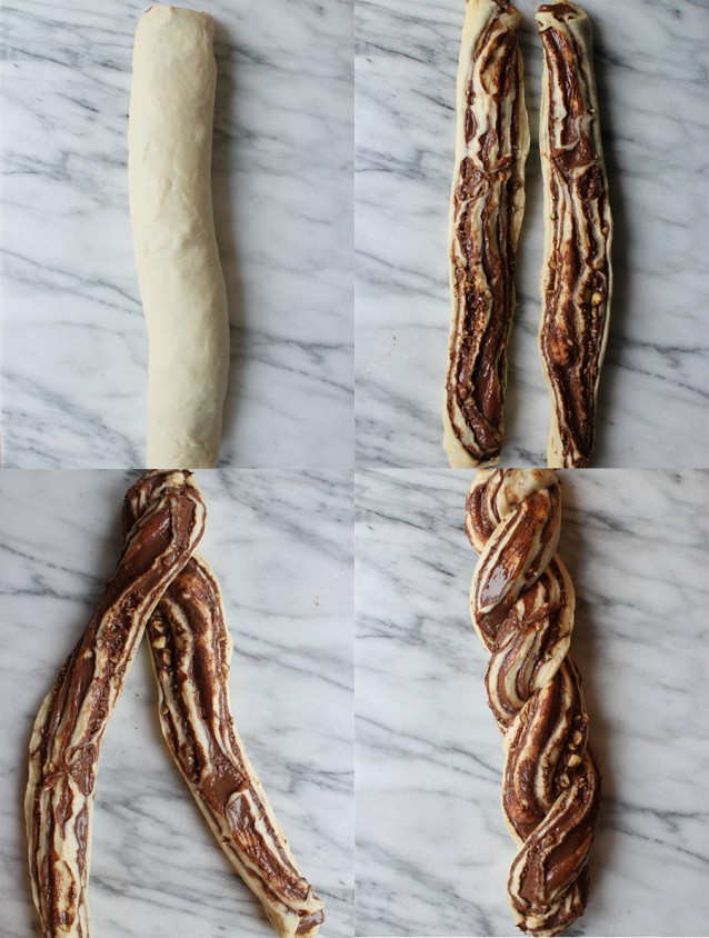 Gevlochten Nutella-brood met kaneel en hazelnoten