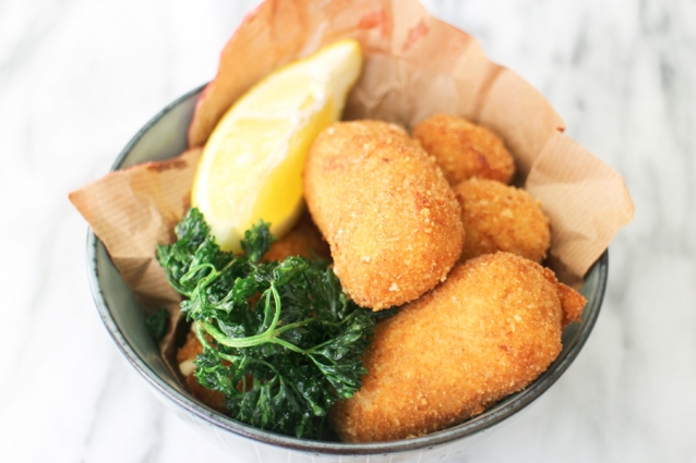 Het is even een werkje, maar deze kaaskroketjes met Zwitserse KALTBACH kaas zijn goddelijk voor tijdens de borrel. Lekker met een partje citroen en wat gefrituurde peterselie. Smullen!