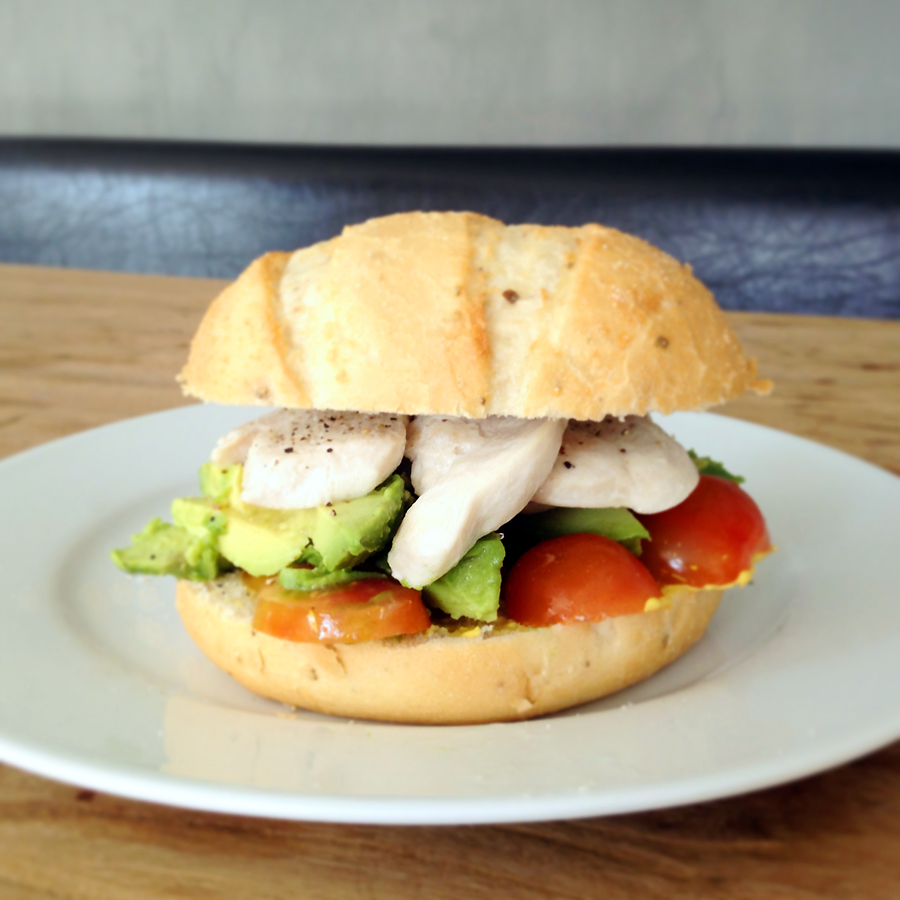 Halveer de Italiaanse bollen en besmeer met mayonaise en mosterd. Halveer de cherrytomaatjes.Ā Schil en ontpit de avocado, snijd in plakjes enĀ besprenkel met citroensap. Beleg het broodje met de plakjes avocado, de gehalveerde cherrytomaatjes en de kip. Breng op smaak met peper & zout. Geniet ervan!