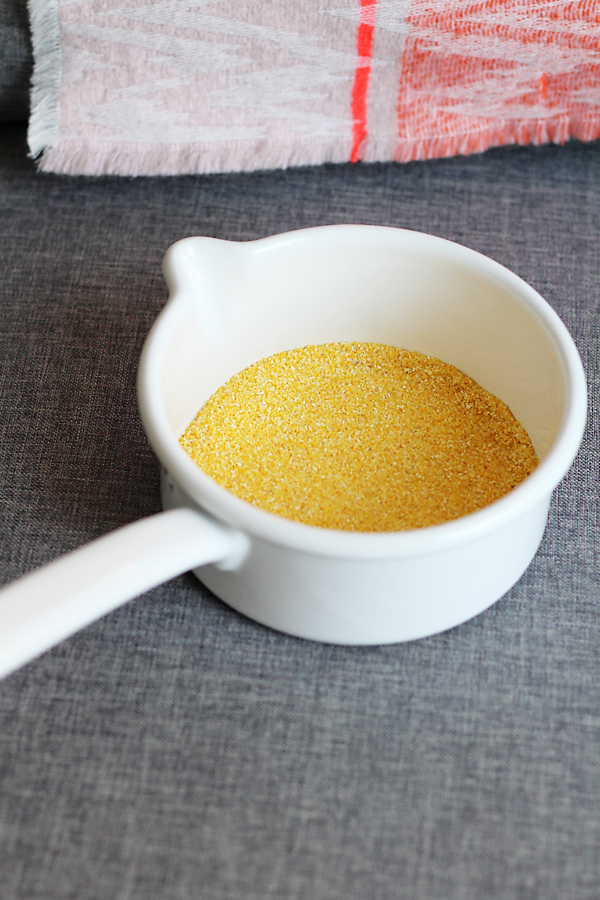 Let op: het duurt ongeveer 2 uur voordat de polentafriet klaar is. Bereid het dus eventueel dezelfde ochtend of de avond ervoor voor door de gekookte polenta alvast op te laten stijven.