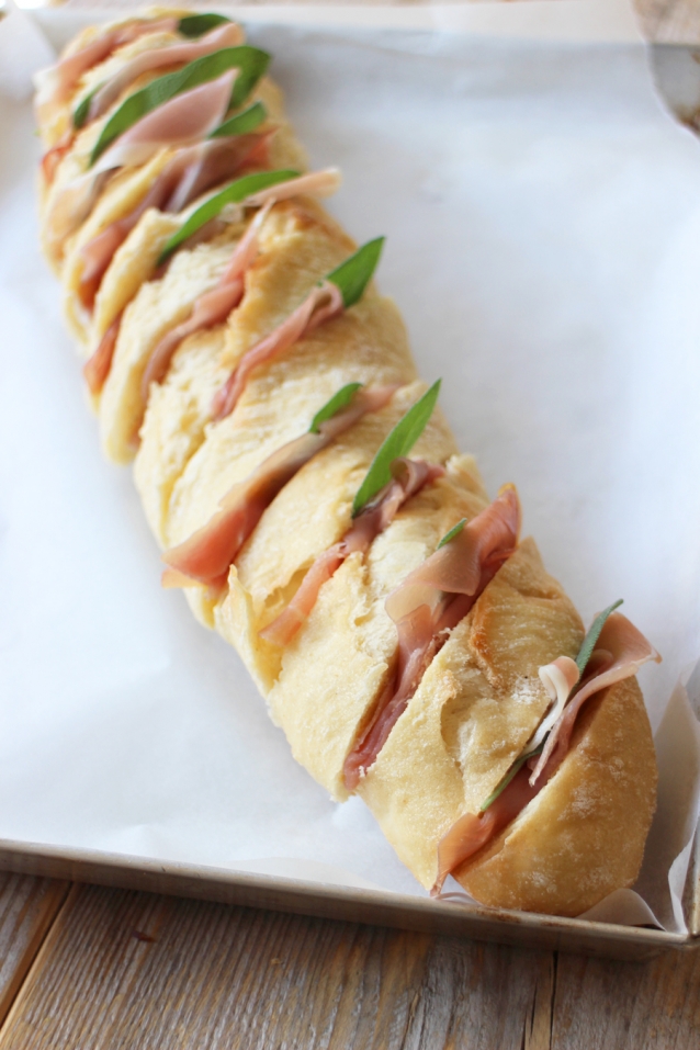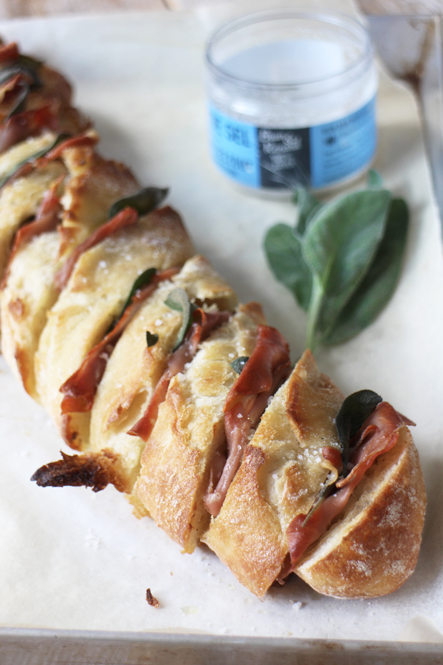Knoflookbrood met salie en Parmaham