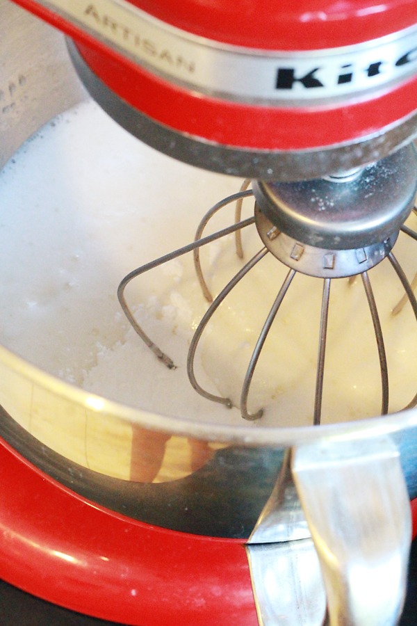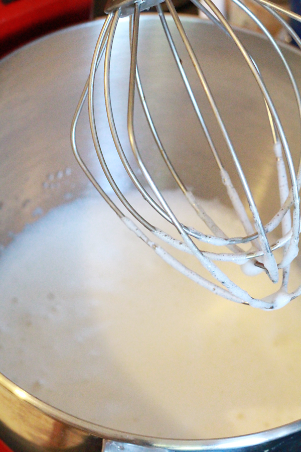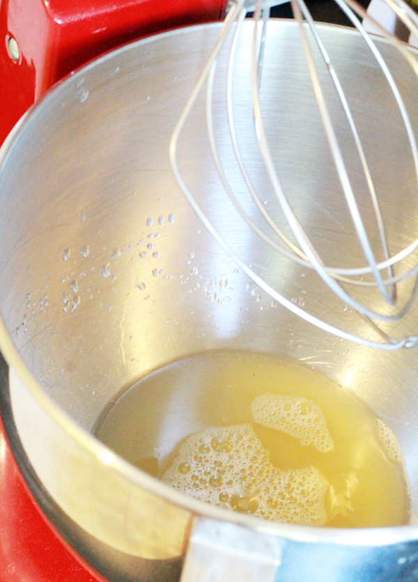 Verwarm de oven op 100 graden. Belangrijk: zorg dat je kom én mixer brandschoon en vetvrij zijn.