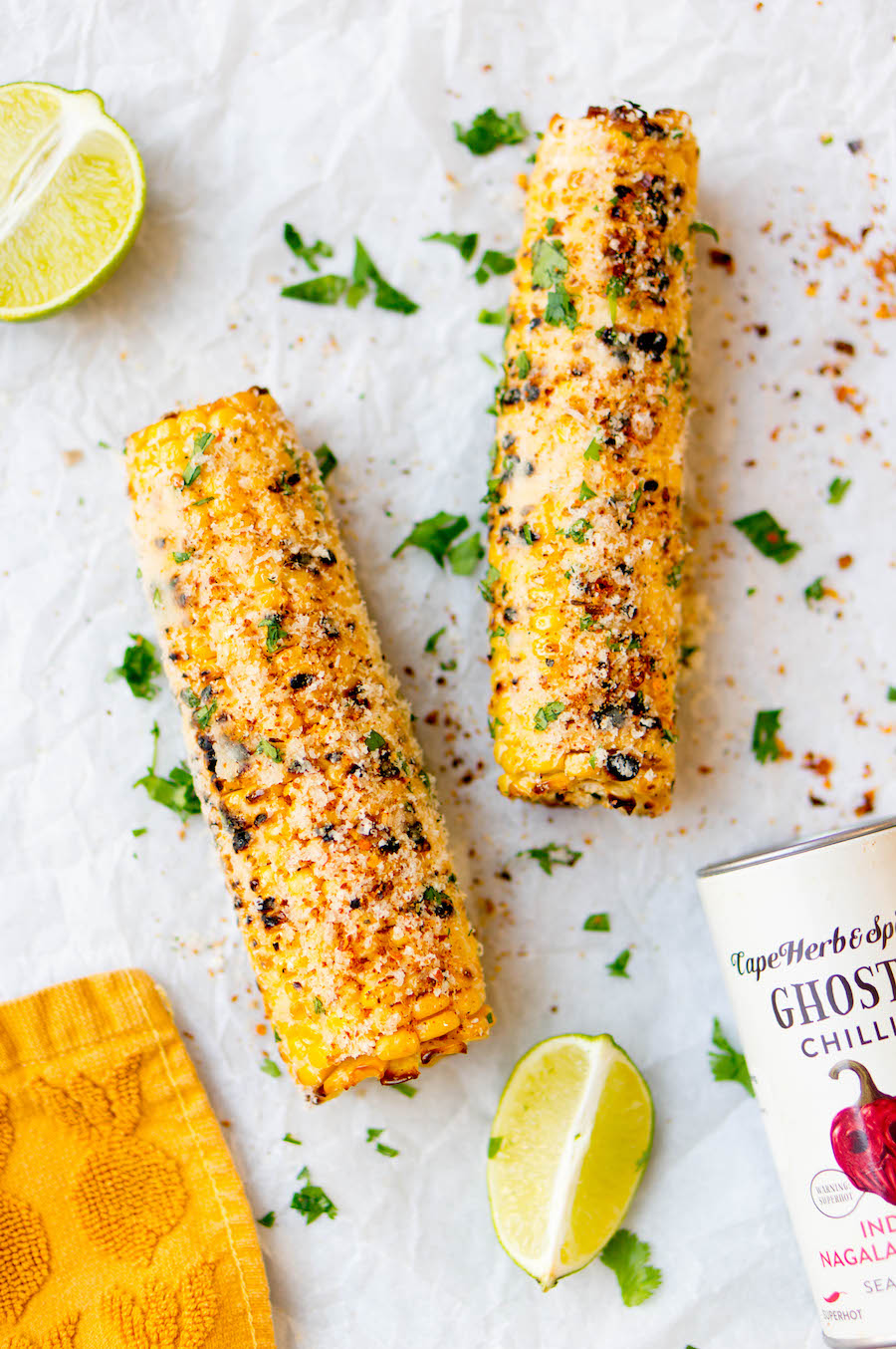 Mexicaanse maiskolven (Elotes) met kaas & chili