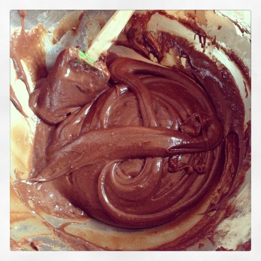 Meng alles goed tot een mooi beslag, schep met een ijslepel bolletjes beslag in cupcakevormpjes en bak in een voorverwarmde oven op 180 graden ongeveer 15 minuten; doe de satéprikker test in het midden om te checken of ze gaar zijn. Je kunt de Nutella muffins ook iets korter bakken, dan zijn ze nog lekker zacht in het midden.