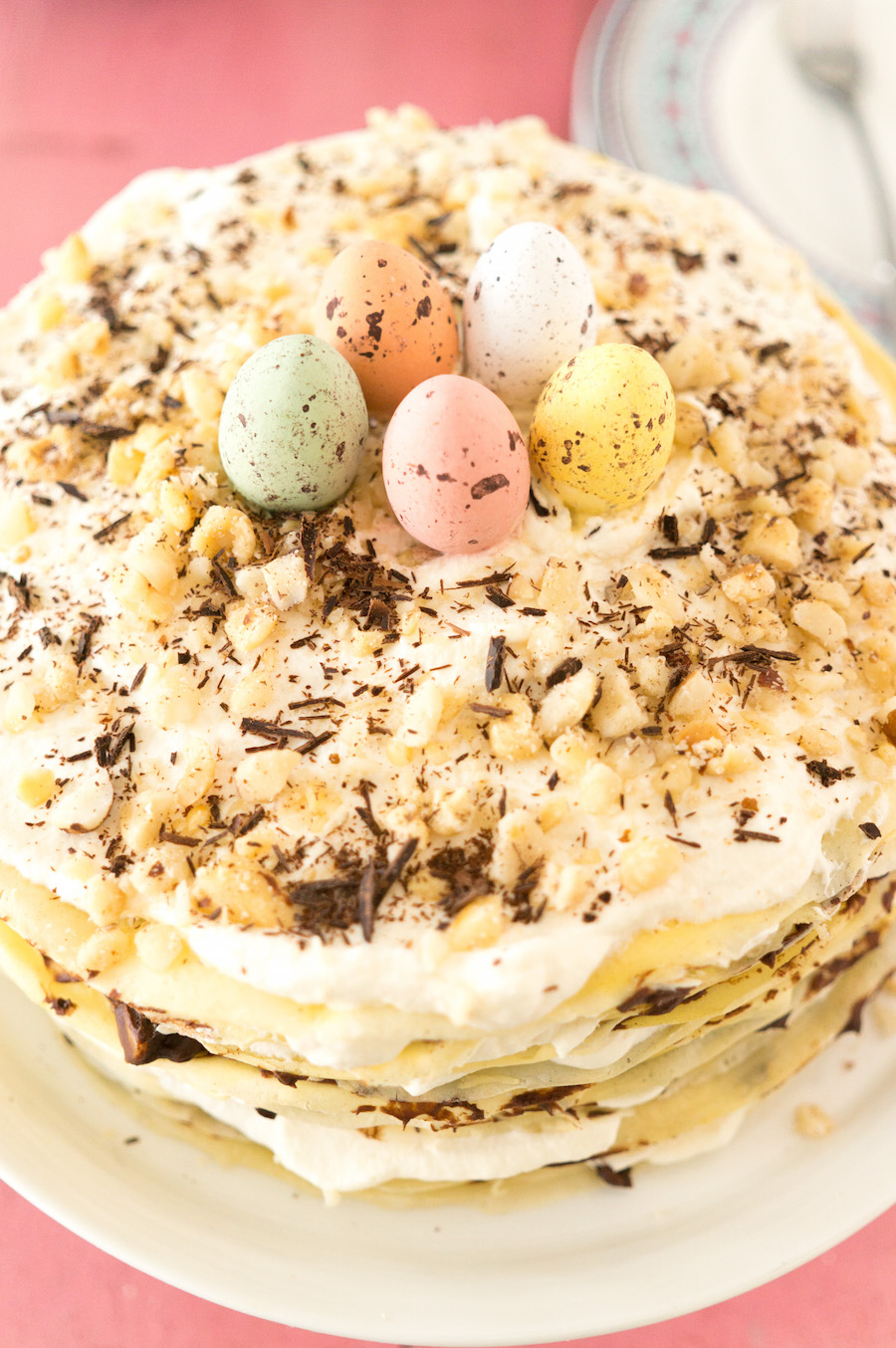 Met Pasen wil je een spektakelstuk op tafel zetten. Iets zoets en paas-achtigs. Liefst in die zachte kleuren van de lente. Met deze pannenkoekentaart voor Pasen zit je gebakken: het is zo’n taart waarvan iedereen steil achterover slaat.