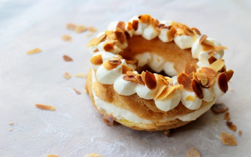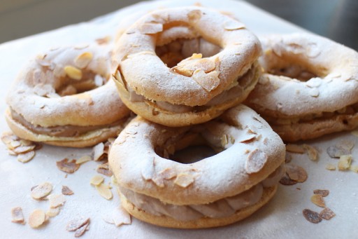Wauw, deze gebakjes genaamd Paris-Brest zien er niet alleen fan-tas-tisch uit, maar ze smaken ook nog eens waanzinnig lekker. De kransjes worden gemaakt van soezendeeg en de vulling is een combinatie van banketbakkersroom met Nutella. Mmm…!