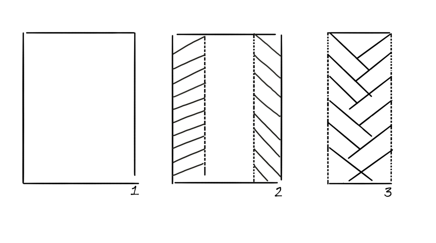 Maak met een mesje drie lijnen in het bladerdeeg, zodat je drie gelijke vlakken hebt. Zorg dat je de vlakken niet los van elkaar snijdt, maar dat het alleen een markering is.
